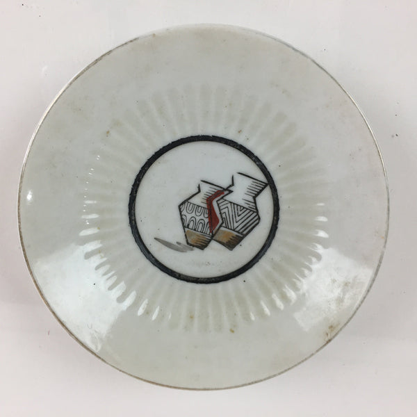 Japanese Porcelain Small Plate Vtg Picture Of Vases White Kozara PY103