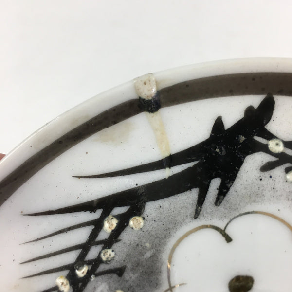 Japanese Porcelain Small Plate Vtg White Plum Blossom Hand Drawn Picture PY37