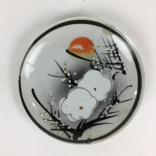 Japanese Porcelain Small Plate Vtg White Plum Blossom Hand Drawn Picture PY39