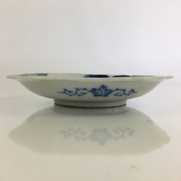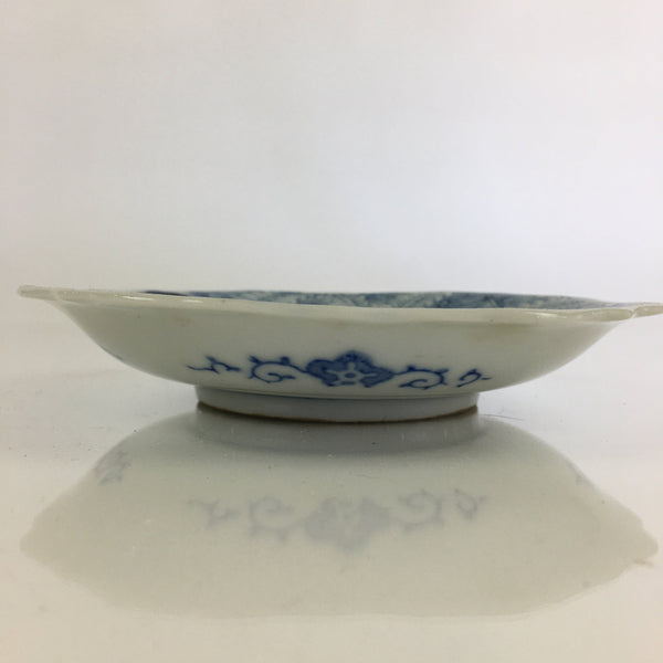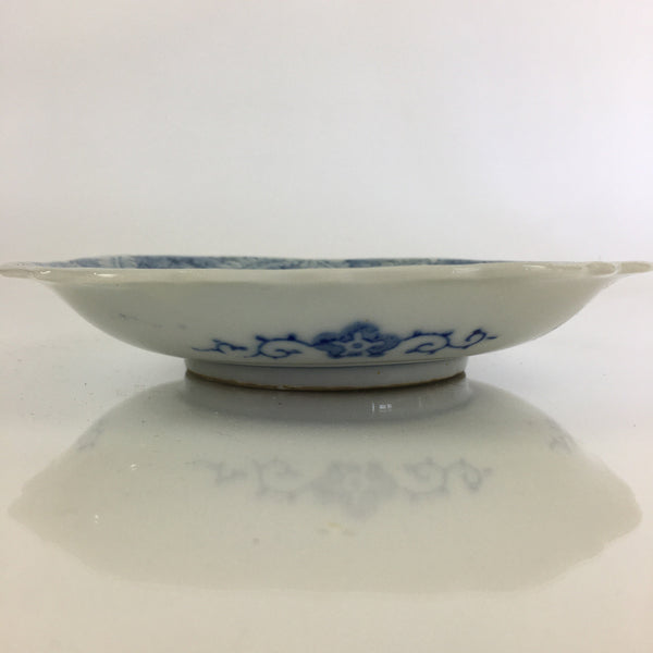 Japanese Porcelain Small Plate Vtg Landscape Of Mountain Village White Blue PY64