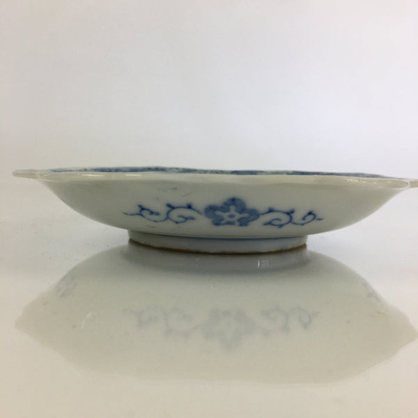 Japanese Porcelain Small Plate Vtg Landscape Of Mountain Village White Blue PY65