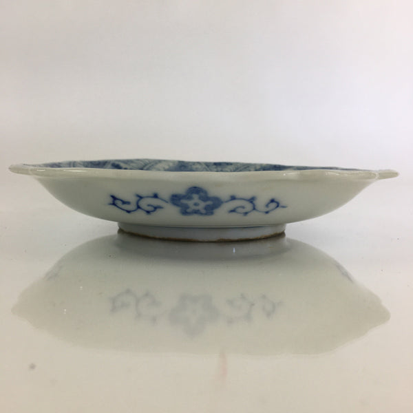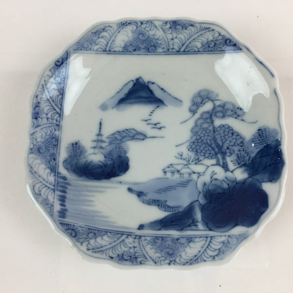 Japanese Porcelain Small Plate Vtg Landscape Of Mountain Village White Blue PY72