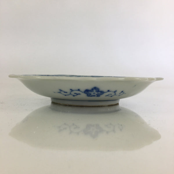 Japanese Porcelain Small Plate Vtg Landscape Of Mountain Village White Blue PY73