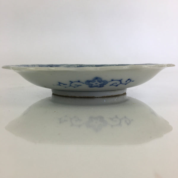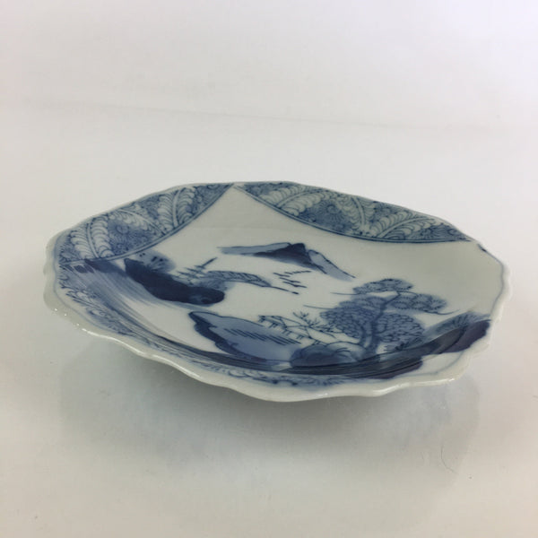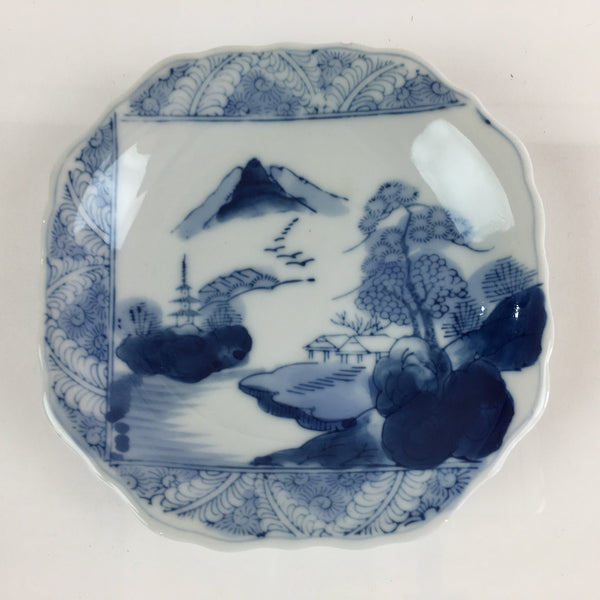 Japanese Porcelain Small Plate Vtg Landscape Of Mountain Village White Blue PY76