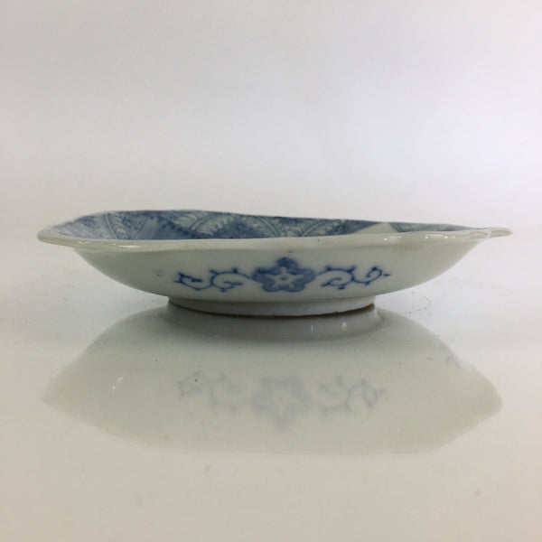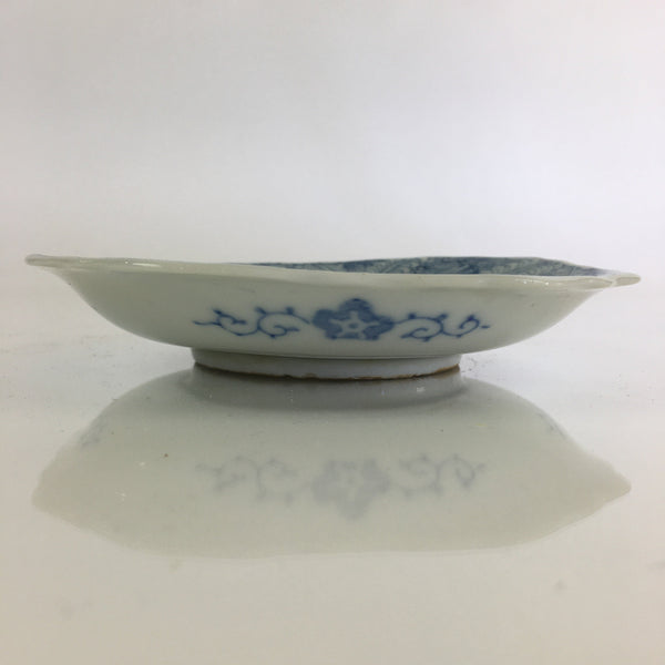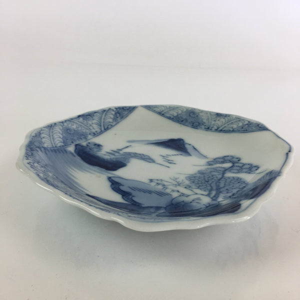 Japanese Porcelain Small Plate Vtg Landscape Of Mountain Village White Blue PY79