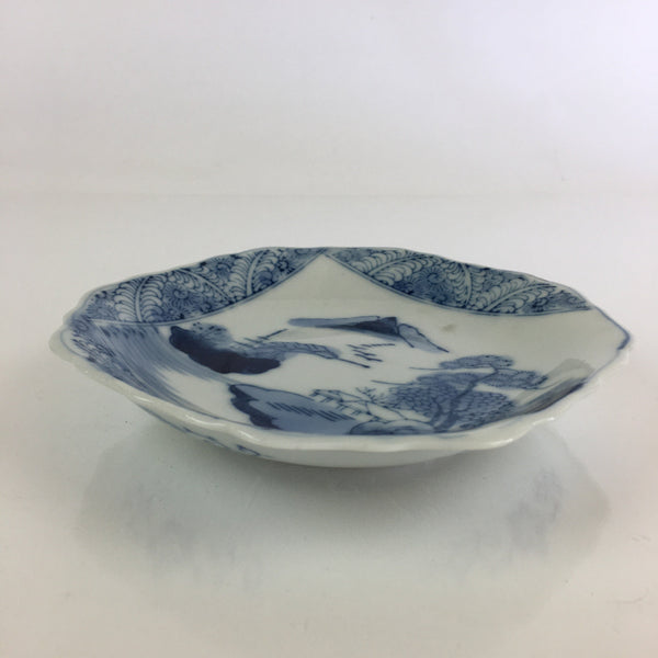 Japanese Porcelain Small Plate Vtg Landscape Of Mountain Village White Blue PY68
