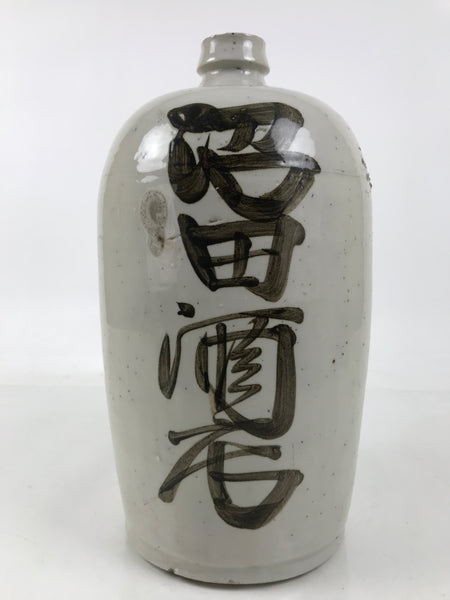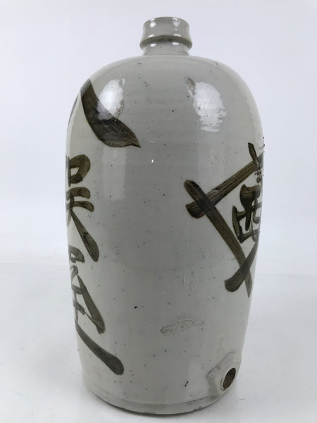 Antique Japanese Ceramic Sake Bottle Kayoi-Tokkuri Spout Large Gray Kanji TS801