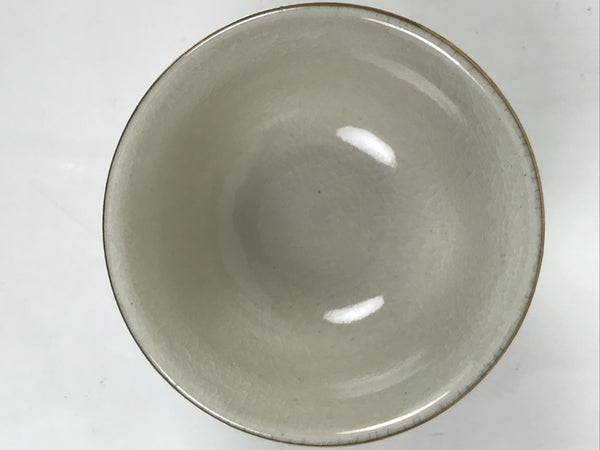 This is a vintage Japanese Kutani porcelain sake cup. This particular type of cup is called wan or "bowl type" due to its resemblance to a rice bowl. In terms of size, it is also called guinomi. This beautiful imari sake cup is beige and features a gorgeous colorful image of two birds and peony flowers with gold accents. It has a red Kutani marking on the bottom.