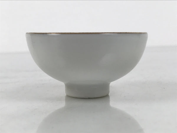 This is a vintage Japanese Kutani porcelain sake cup. This particular type of cup is called tsubomi or "bud type" due to its resemblance to a flower bud. In terms of size, it is also called ochoko. This beautiful imari sake cup is fully decorated with precise gold linework on a brown inner rim. The entire design features a decorated court carriage ox cart, also called gosho guruma. It has the Kutani marking on the bottom.