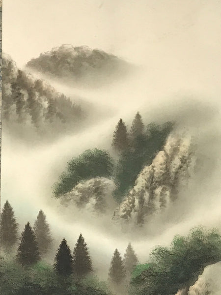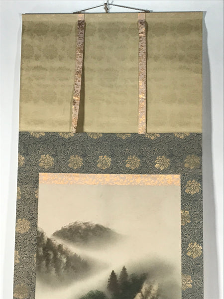 Japanese Hanging Scroll Vtg Kakejiku Fog Mountain River Landscape Ink KJ105