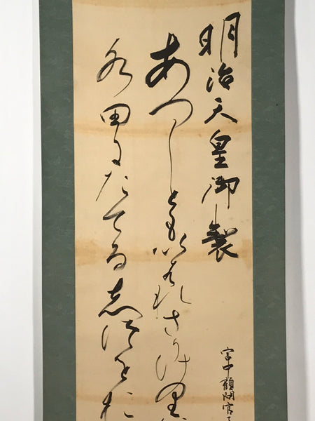 Japanese Hanging Scroll Vtg Kakejiku Meiji Tenno Gyosei Calligraphy Poetry KJ110