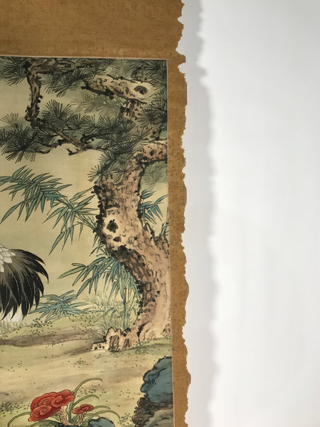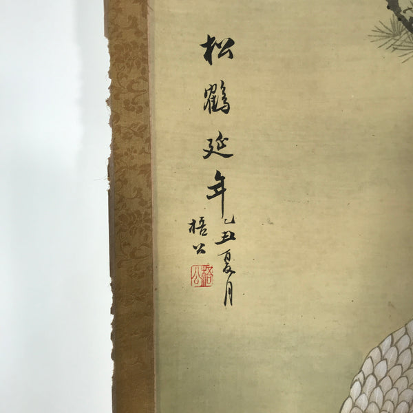 Chinese Hanging Scroll Vtg Kakejiku Tsuru Cranes Matsu Pine Trees Color KJ62
