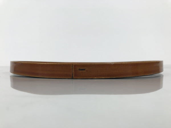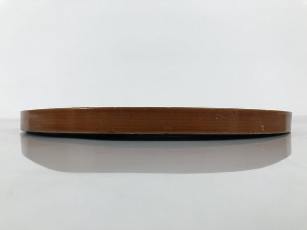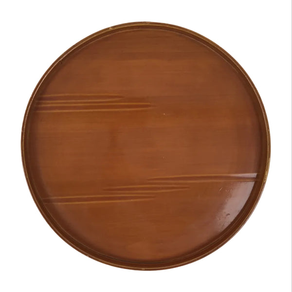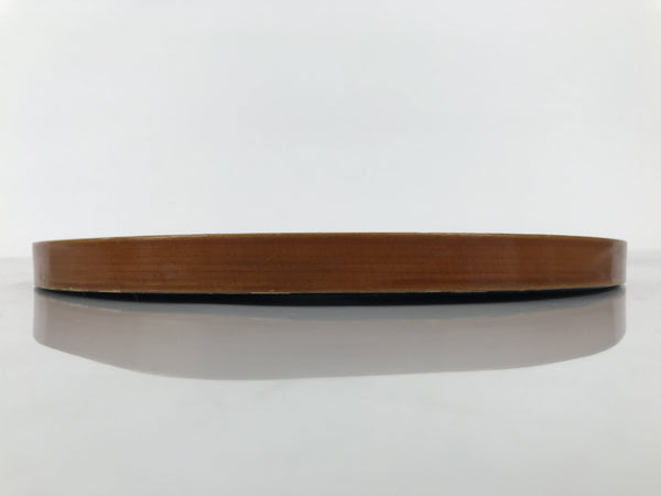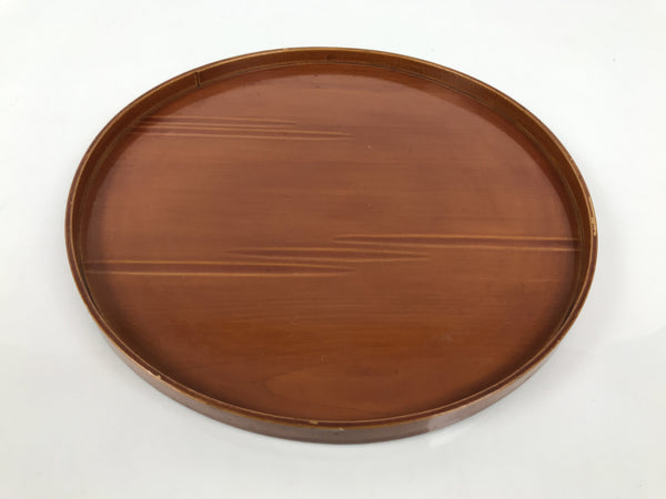 Japanese Lacquered Wood Serving Tray Obon Vtg Hida Shunkei Round Brown Line L568