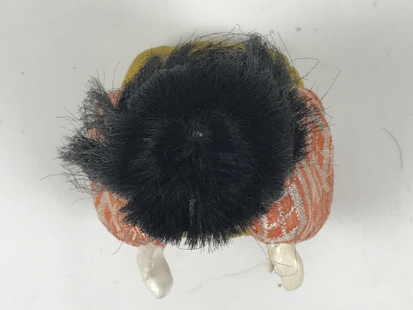 This adorable vintage court lady ohinasama doll dressed in an orange, gold, and white kimono is the perfect addition to any existing hina set or adds gorgeous Eastern flair to any home decor. She typically holds a kuwae with no choushi accessory and a sake server, but this piece is missing. Her spiked headpiece is also missing. This doll comes with a simple black resin stand. The doll is made in the kimekomi style, which is crafted by adhering and pressing silk fabric onto a carved wooden, resin, or clay base.