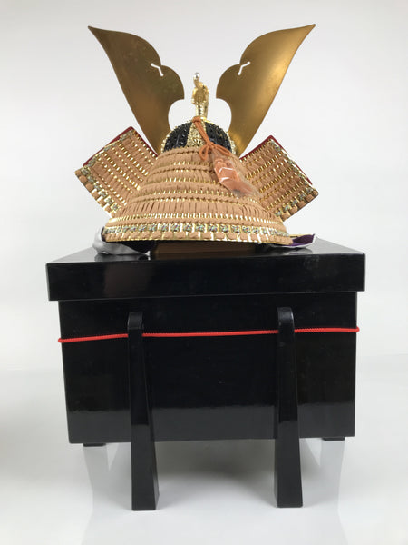 Vintage Japanese Kabuto Helmet Display w/ Lacquered Wood Box