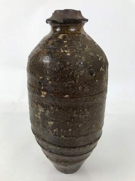 Japanese Ceramic Flower Vase Vtg Ikebana Kabin Amphora Sake Bottle Brown FK193
