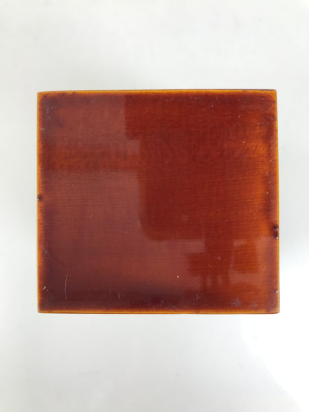 This is a vintage Japanese lacquered wooden flower vase, or kabin. It is lightweight and has a striking caramel brown color in true Hida Shunkei style. The vase is made of wood and has a thin copper metal insert to keep the inside of the vase safe from moisture. It contains two rectangular boards as a vase stand, which can be arranged as you like.  It can be used for all types of flower arrangements both ikebana and casual bouquets.