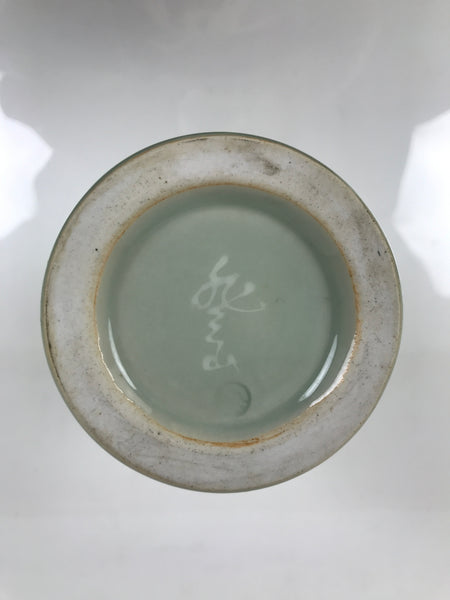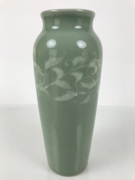 Japanese Porcelain Celadon Flower Vase Vtg Ikebana Kabin Green Leaf Seiji FK213