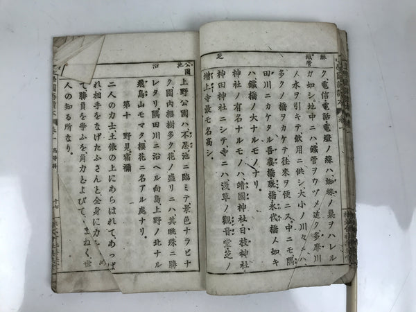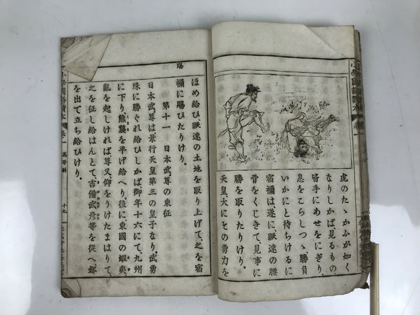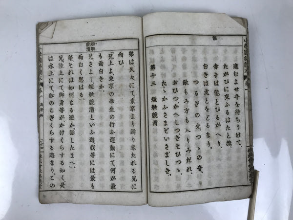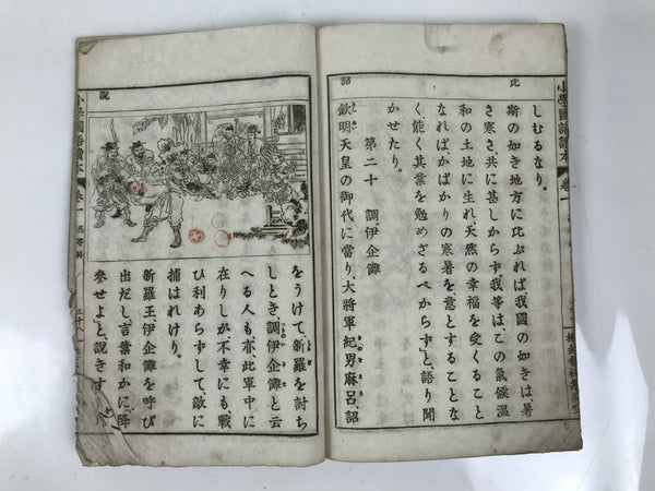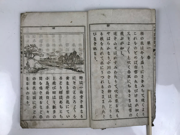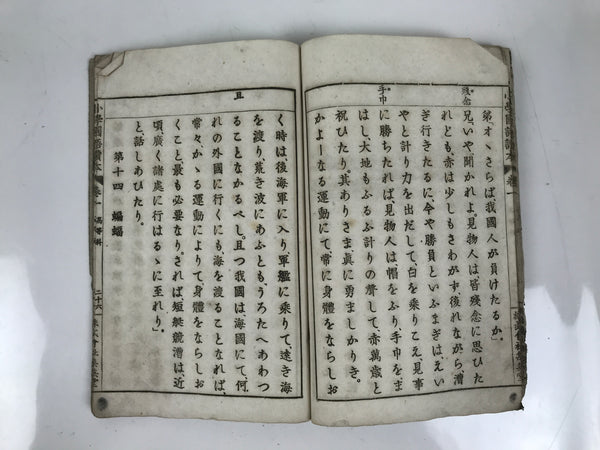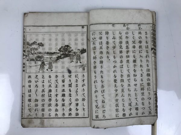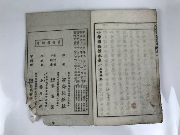 This is an antique Japanese textbook for elementary school students at an upper grade. The subject is reading in standard Japanese and it features 20 texts on various topics such as history and society. This book was published in 1900 (Meiji 33).