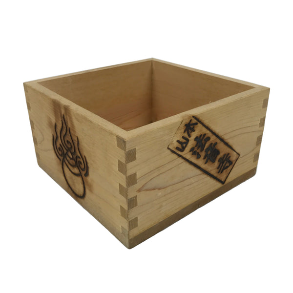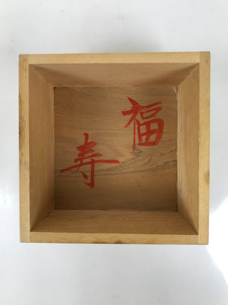 Japanese Wooden Measuring Cup Vtg Masu Decoration Temple Brand Kanji Fukuju X216