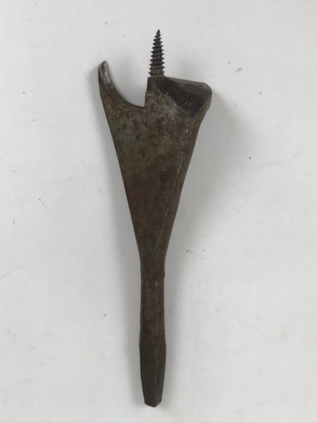 This is a vintage Japanese auger, hanegiri, for electrical work. It is used for opening holes in a wooden plate. When used, it is set on a manual tool, a 'click ball'.