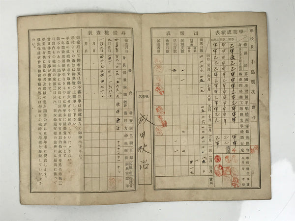 Vintage Japanese Student Record Report Card