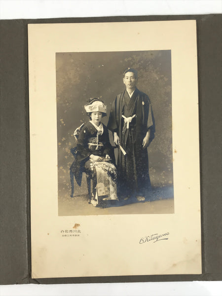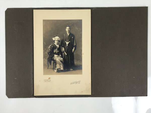 Antique Japanese Taisho Wedding Photograph Kimono Bride Groom Black White PH13
