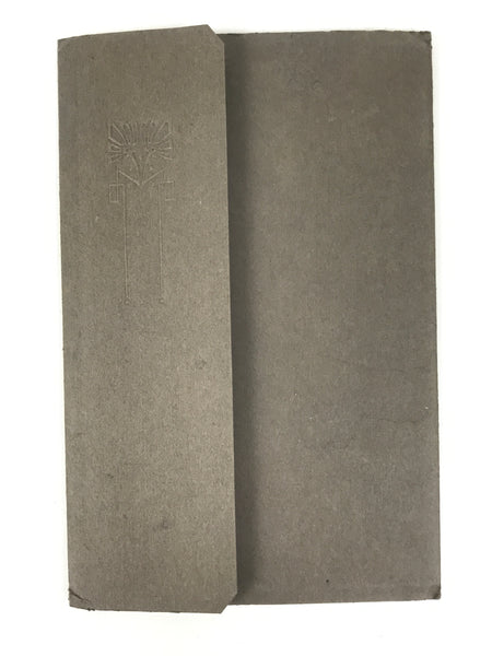 This is an antique Taisho Era black and white wedding photograph of a Japanese couple. Both bride and groom are wearing traditional wedding-style kimono and haori with hakama (uchikake and kuromonpuku). This photo comes stored in a gray paper folding cover.
