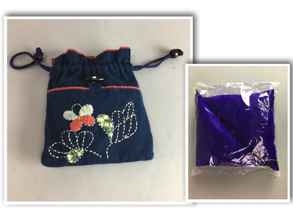 Japanese Handmade Drawstring Bag Pillow Vtg Frame Protection Cotton Purple J678