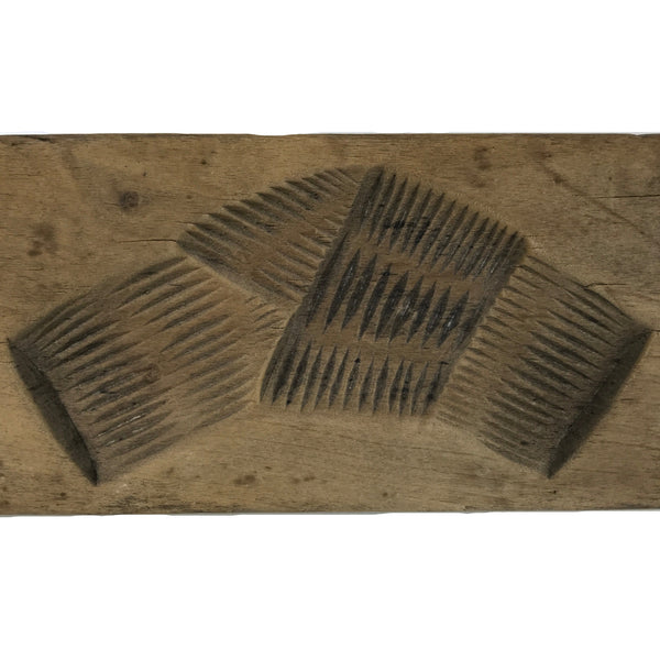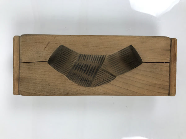 This two-panel kashigata mold is carved with the design of a knot of kelp (kombu). Kelp in Japanese cuisine symbolizes good fortune and happiness and its similarity to the word yorokobu which means "happiness" or "celebrate". As such, kombu is often incorporated into meals of celebratory nature in some manner. This mold can be used to make sweets or as an eye-catching decorative item.