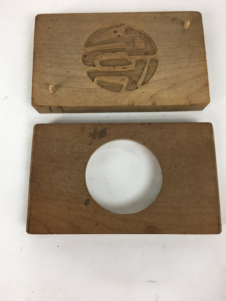 Japanese Wooden Cake Mold Kashigata Sweets Vtg Carving Brown Celebration Kg338
