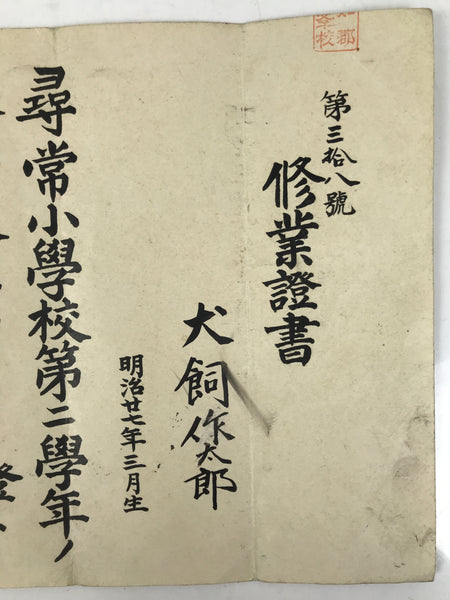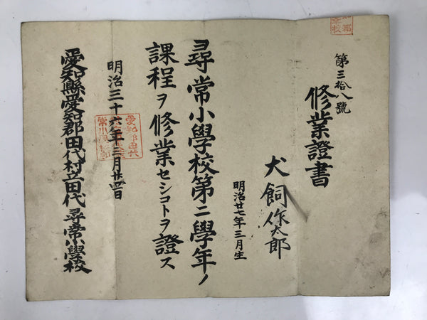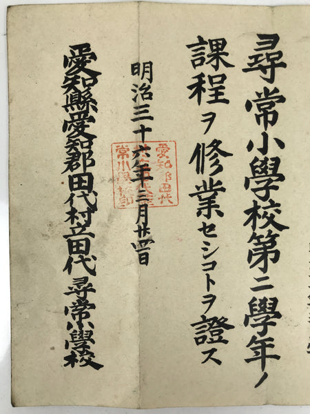 This antique Japanese elementary school second-grade certificate of completion is dated Meiji 36 (1903). It belonged to a student going to a school in Aichi.