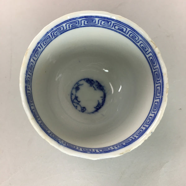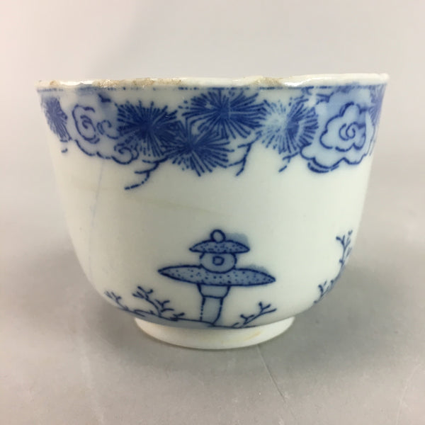 Japanese Sometsuke Porcelain Teacup Vtg Yunomi Sencha Blue Floral Design PT388