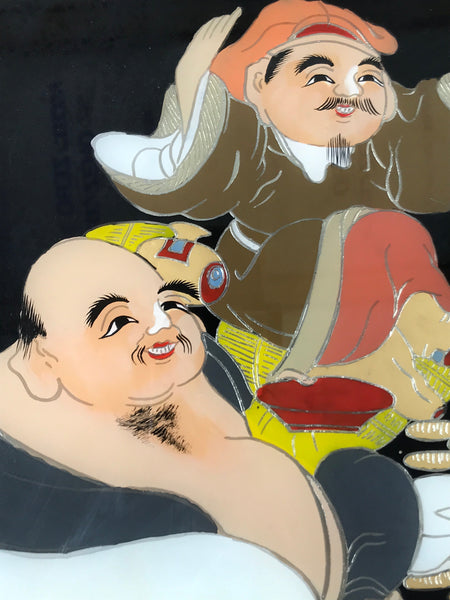 Japanese Framed 7 Lucky Gods Artwork Vtg Enamel Ebisu Daikoku Hotei Jurojin FR27