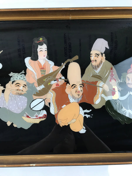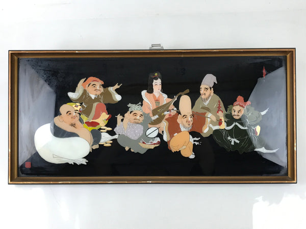 Vintage Japanese Seven Lucky Gods Framed Panel