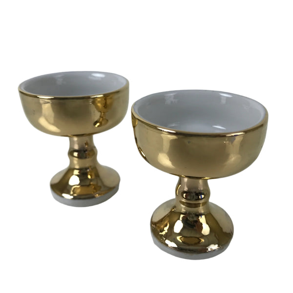 Japanese Buddhist Altar Fitting Ceramic Rice Offering Cup Vtg 2pc Gold BA579