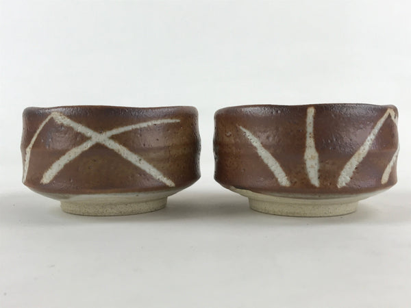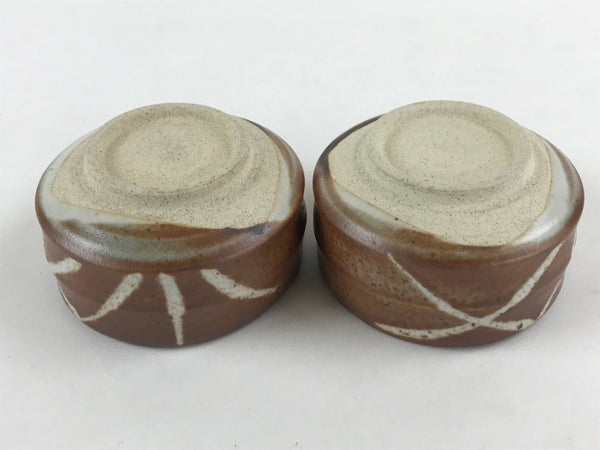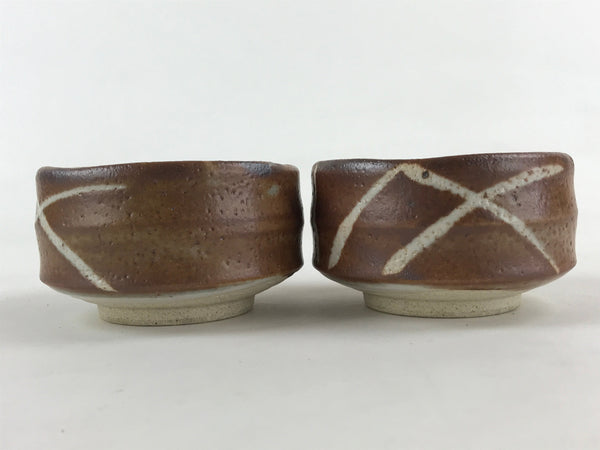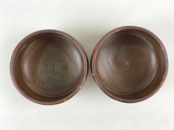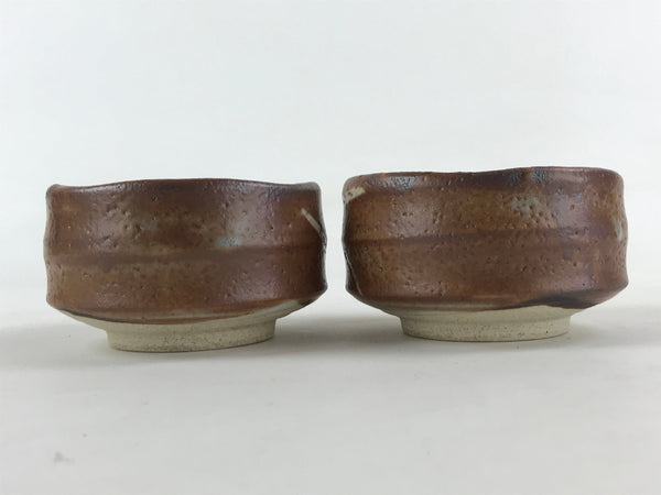 Japanese Ceramic Green Tea Ceremony Bowl 2pc Set Pottery Matcha Brown Chawan PX6