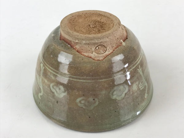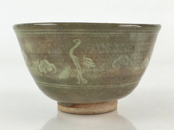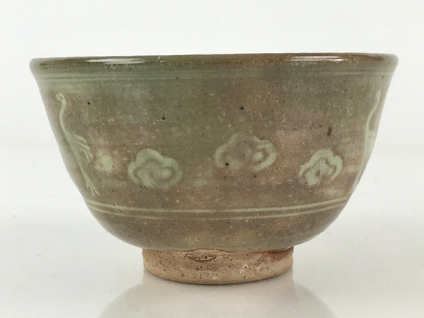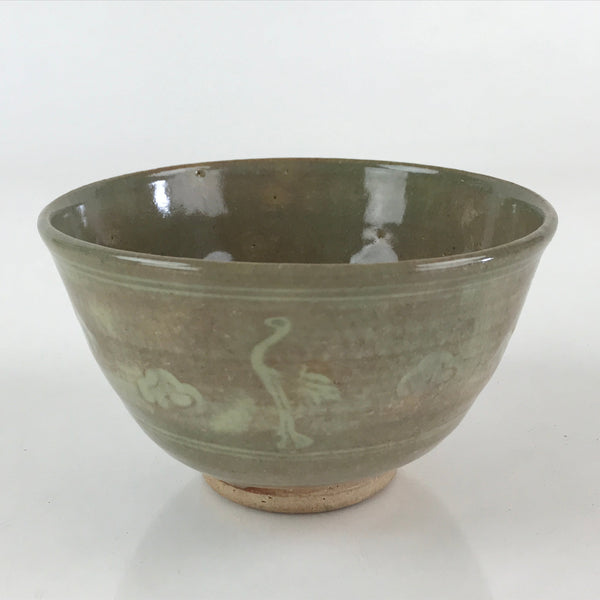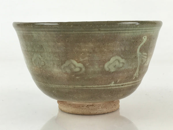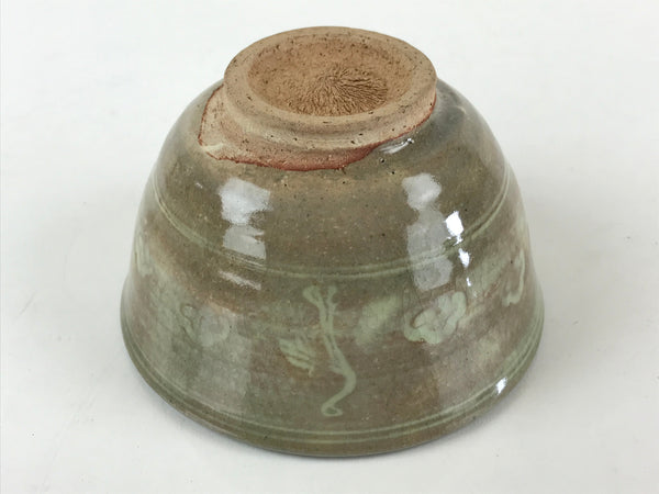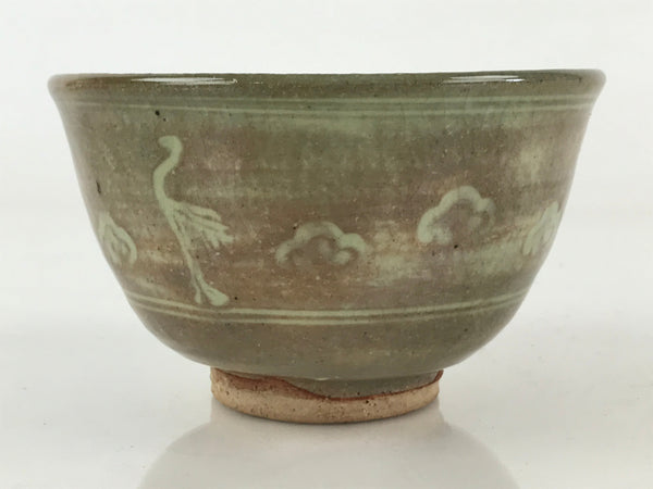 This is a Japanese vintage green tea bowl Matcha Chawan. Green tea bowls are not only for drinking tea but also for appreciating tea bowls as works of art. These are available in a wide range of sizes and styles, and different styles are used for thick and thin tea. Shallow bowls, which allow the tea to cool quickly are used in summer; deep bowls are used in winter to keep the tea hot for a longer time.