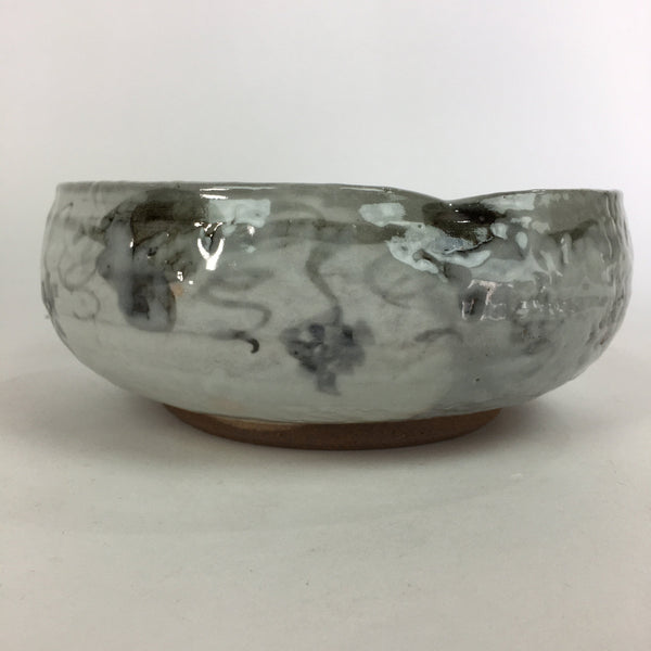 Japanese Ceramic Large Bowl Vtg Kyoyaki Pottery White Brown Oobachi PX548