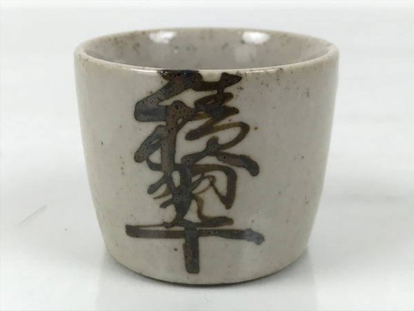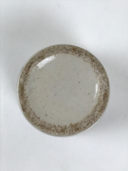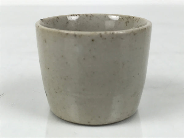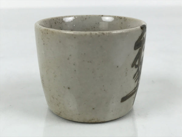 Japanese Ceramic Sake Cup Vtg Ochoko Guinomi Pottery Off-white Kanji Brown G313
