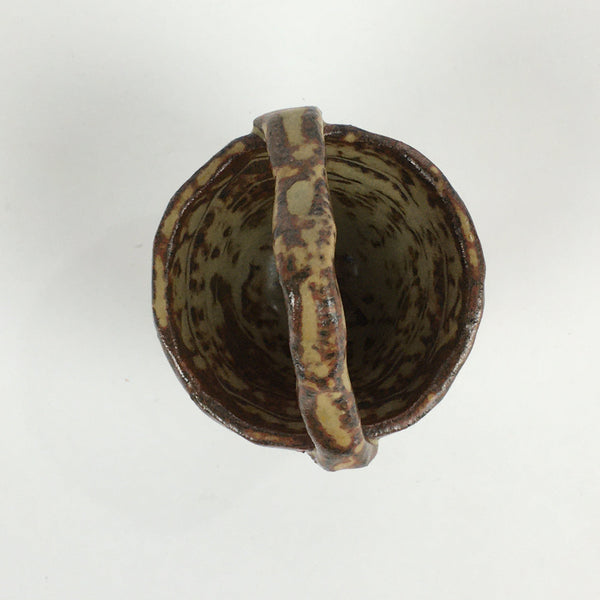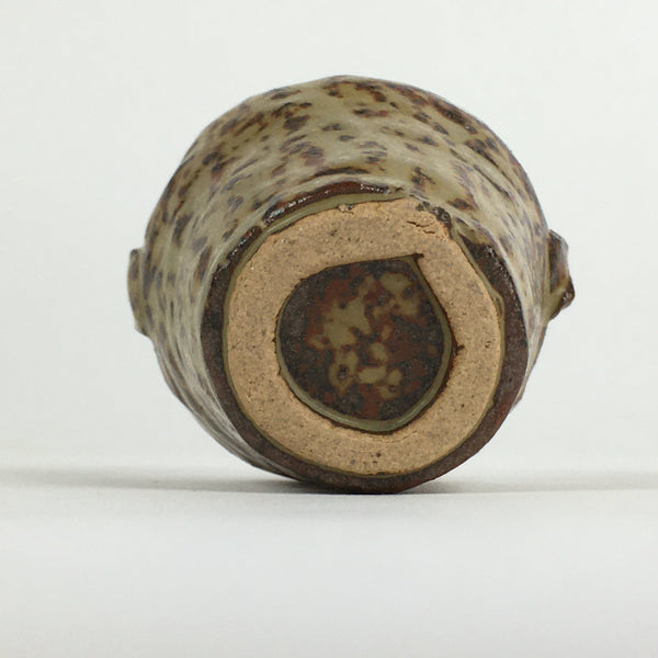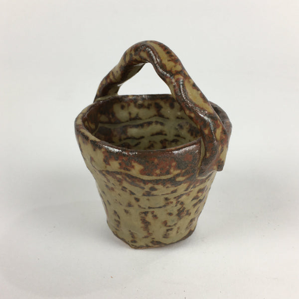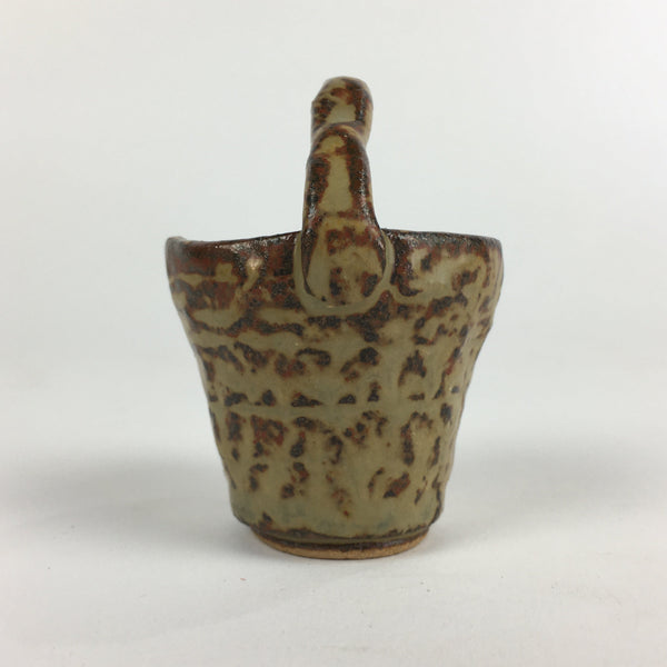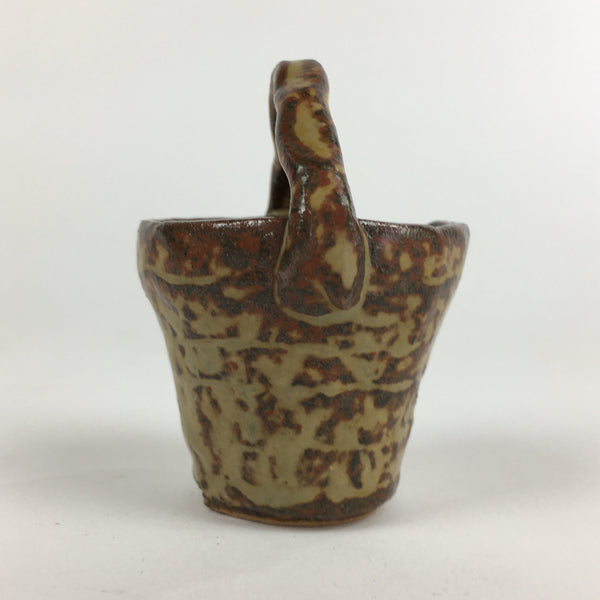 Japanese Ceramic Vtg Bucket Shaped Mini Flower Vase Handle Brown Yellow PP917