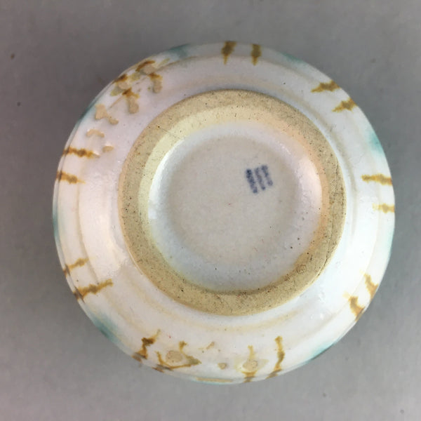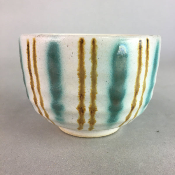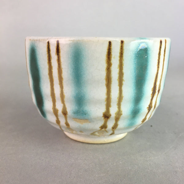 Japanese Ceramic Teacup Yunomi Vtg Pottery Green Brown White Sencha TC112
