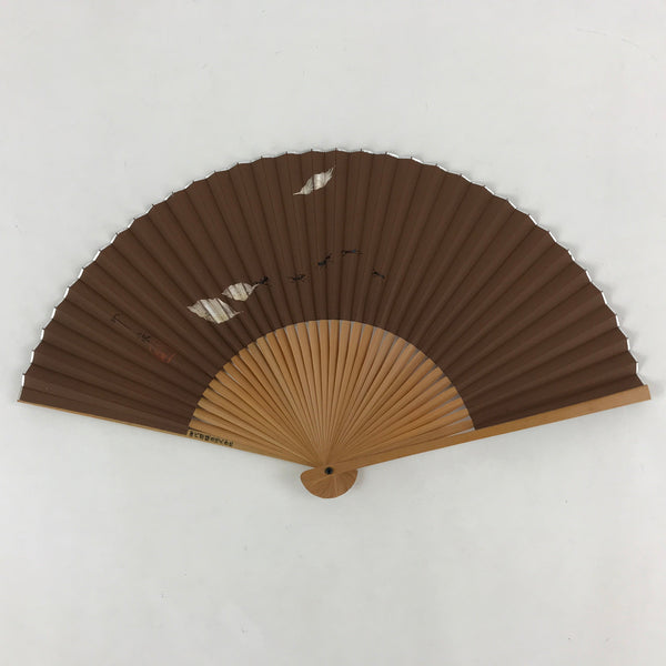 Japanese Folding Fan Sensu Bamboo Frame Ants Leaves Brown Kanji Red Seal 4D679