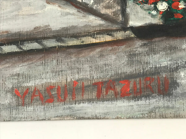 Japanese Modern Family Home Acrylic Painting Original Signed Yasui Tazuru FL184