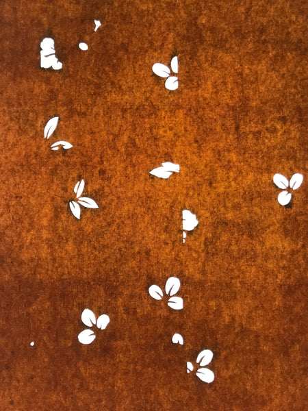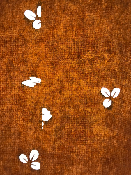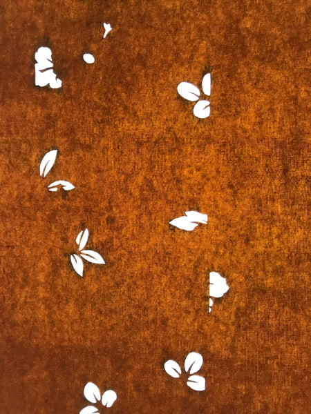 Using traditional mulberry paper, this katagami stencil with silk mesh backing features a simple, scattered design of plants (mostly leaves).