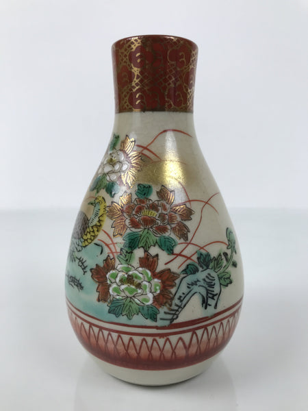 Japanese Kutani Porcelain Sake Bottle Tokkuri White Red Gold Pheasant Bird TS887