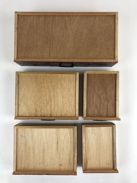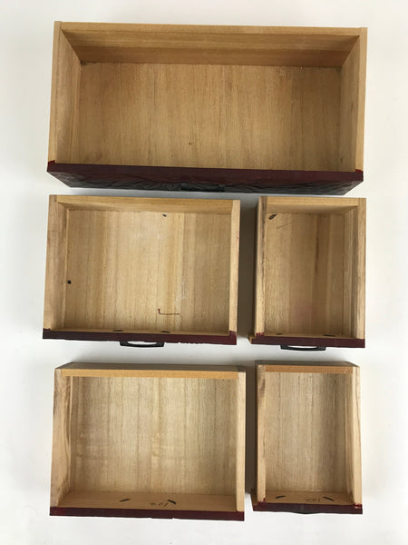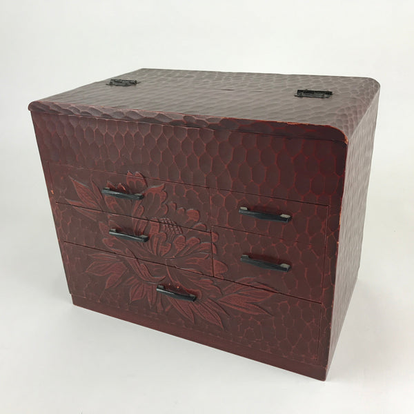 Japanese Lacquered Wooden Sewing Box Vtg Haribako Tansu Carved Peony T330