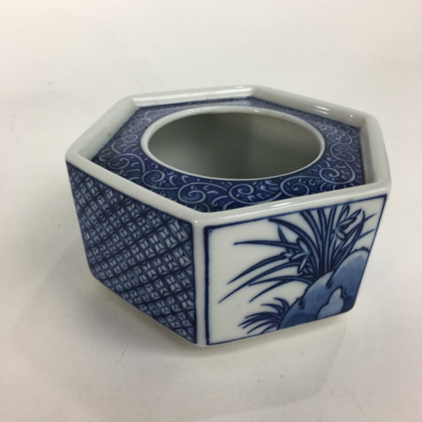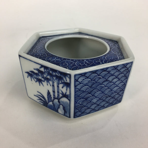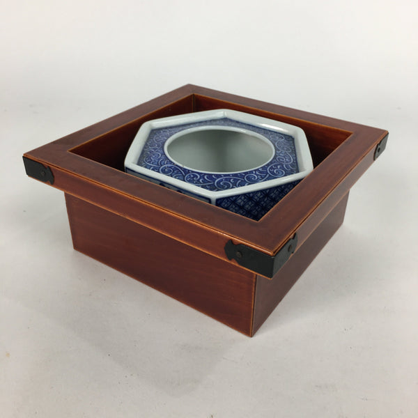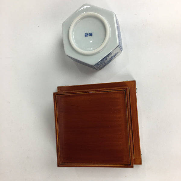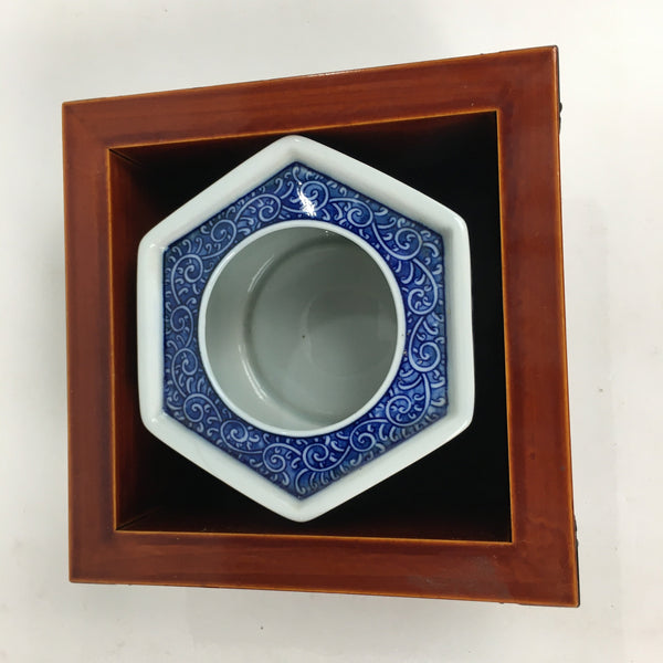 Japanese Lacquerware Vtg Wooden Tray Porcelain Ashtray Hexagon Blue UR488