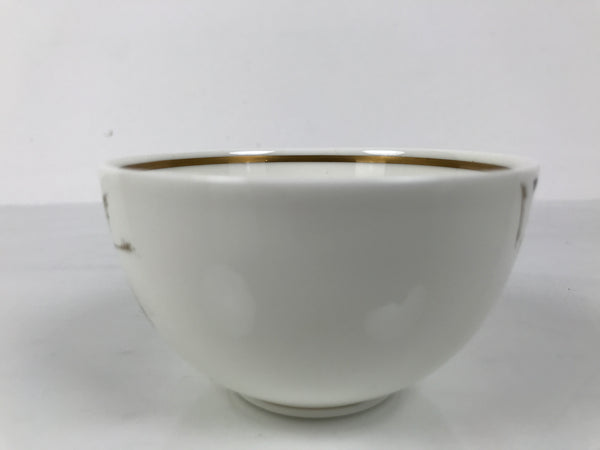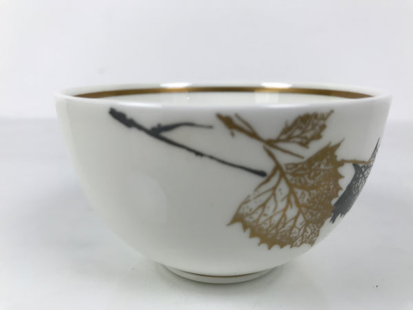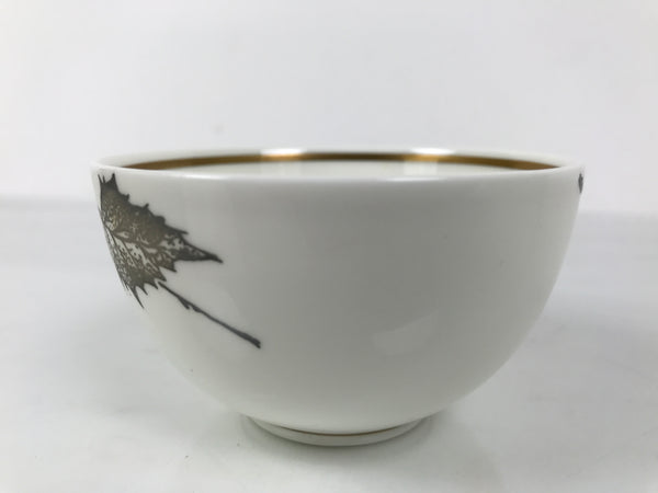 This vintage Japanese Narumi bone china porcelain teacup is white with brown and gold leaves and a gold band inner rim. This small style of teacup is excellent with a chataku (saucer/coaster) beneath.