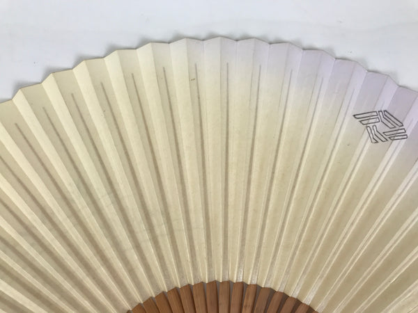Japanese Paper Folding Fan Sensu Vtg Bamboo Frame Beige Purple Hatch Mark 4D971